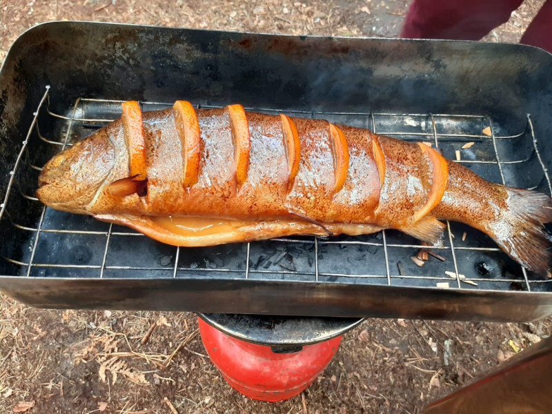 А это рыба копченая на деревянной щепке, это вкуснятина уехала со мной домой.