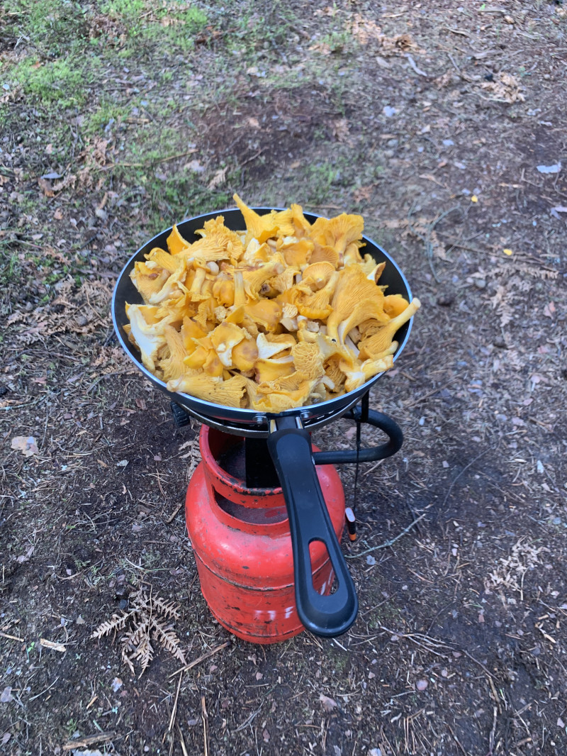 Лисички в лесу зажарили и с’ели, ещё отдельно жарили картошку и свинушки)