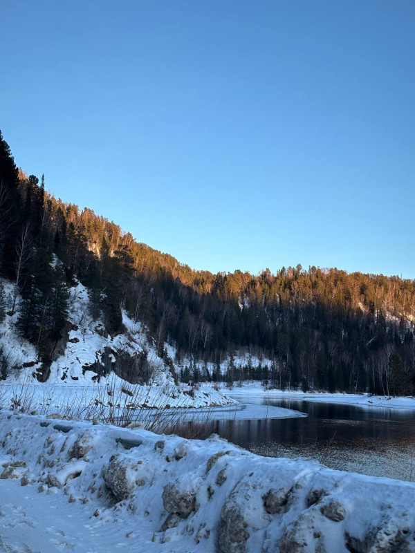 Привет всем) Давно хотел съездить на Телецкое именно зимой. И всё вечно откладывалось на потом...И так каждый год...Вдруг пришло понимаю,что потом может и не быть. Решили забить на текущие дела и поехать. Тем более прогноз погоды был идеальным. Солнечная погода и -5.. -3°C