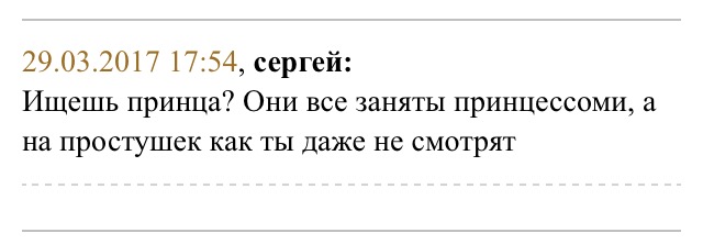А вообще я обажаю читать глум от страшненьких недалёких безработных, снимающих койкоместо, которые пишут даже без приветика и радуют одной фразой. А потом ходят в анкету 159 раз в день