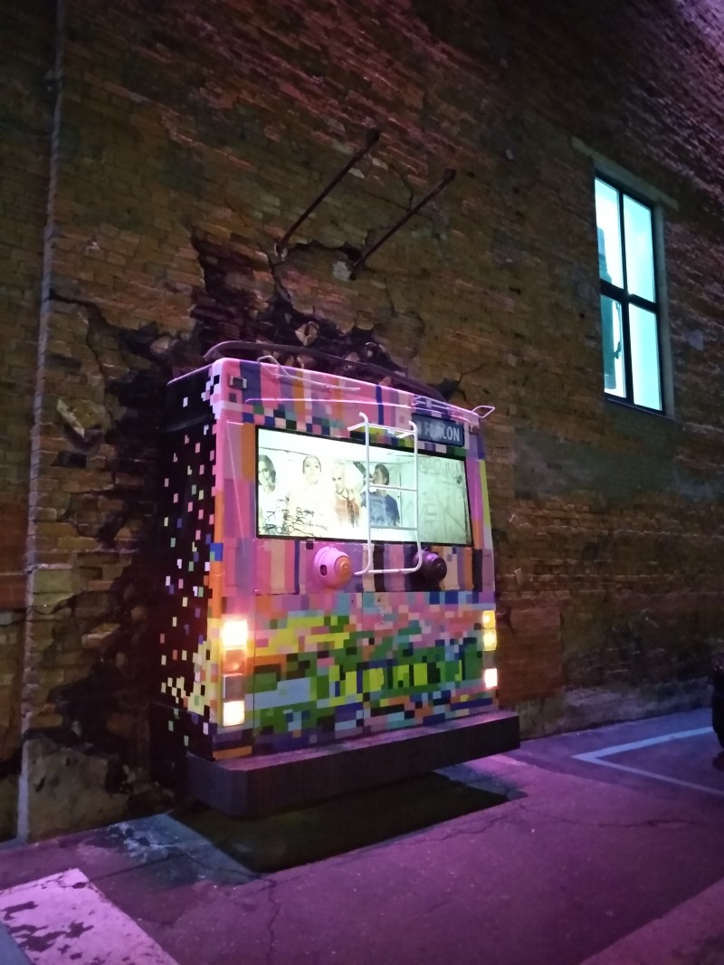 Это на территории дизайн-завода Flacon. Троллейбус в стене)