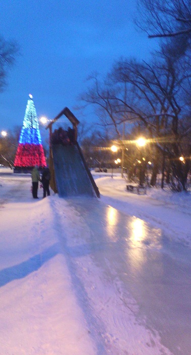 А мы сегодня на елку ходили от секции айкидо. А вечером на горку. Но у нас холодает. Ребенку было жарко, а я замерзла.
