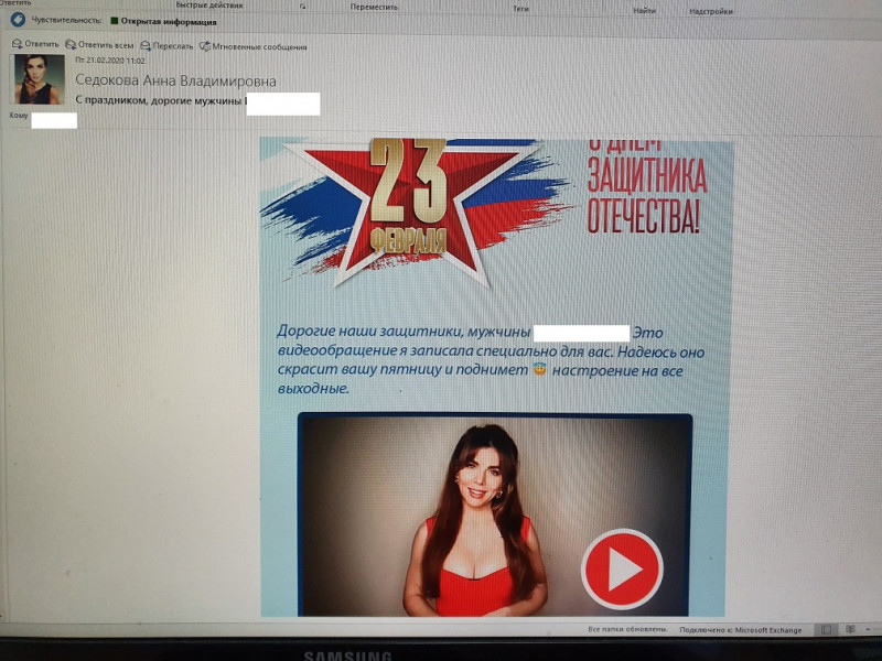 Фирмы поздравила своих сотрудников персональным обращением Анны Седоковой: