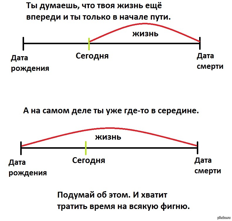 Графики прикольные))я бы конечно чуть подправил, но не знаю, как нарисовать сюда). "На самом деле" никто не знает в каком месте горизонтальной оси его жёлтая чёрточка находится в каждый момент времени..если только человек РЕАЛЬНО не планирует суицид.
