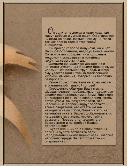Нууу... так можете почитать про них ))) целая книжка есть про Шуршиков )) а еще есть Пузявочки, Кузявочки, Дузявочки, Зузявочки и Музявочки ))))