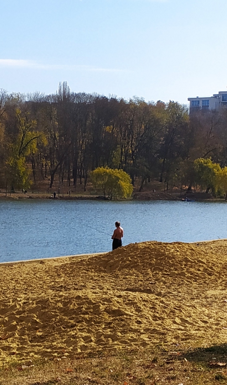 Он теперь в одних трусах, совсем разделся. Только я уже далеко, на фото не видно будет.
