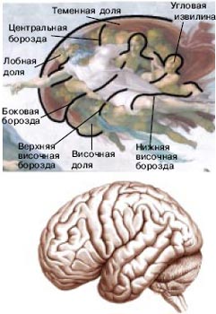 Легко угадывается боковая борозда, отделяющая лобную долю мозга от височной. Верхняя и нижняя височные борозды отграничивают среднюю височную извилину. Правое плечо Саваофа — это средняя лобная извилина. Профиль одного из ангелов повторяет центральную, или роландову, борозду — границу между лобной и теменной долями мозга. И наконец, головы двух ангелов за спиной Создателя — это не что иное, как надкраевая и угловая извилины.