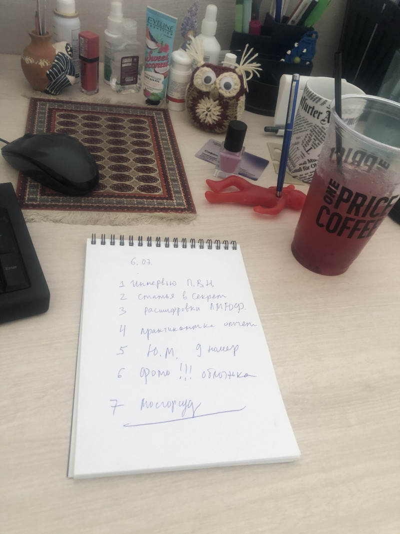 Я только сейчас задумалась о том, что мне сегодня надо сделать..