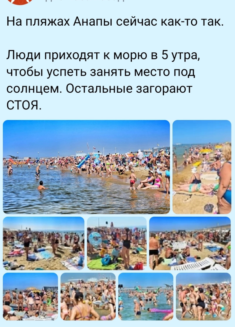 Свн сейчас в Анапе в лагере, у них свой пляж, там свободно. Говорит водорослей много, из-за этого не хочет купаться лезть ждёт когда вернётся и тут в карьере накупается