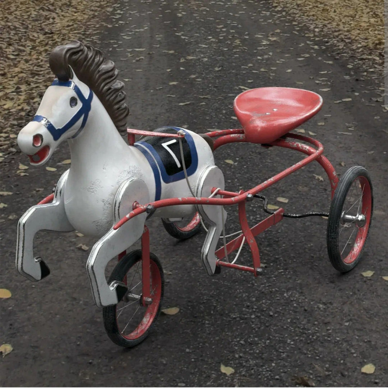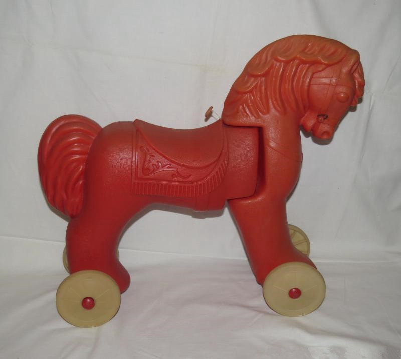 У меня была такая. Там было ещё колечко с верёвкой. За неё дергаешь и конь ржал.