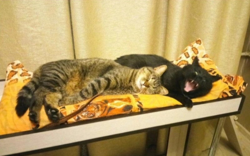 Двое на самовыгуле. Домой не приносят,под окно складируют. Так сложилось,что первый этаж. Через него ходят гулять и так же приходят. Каспер любит есть на халяву у пенсионеров, а вот Мрусь дикарка, удочерила с улицы. Она вот охотник.