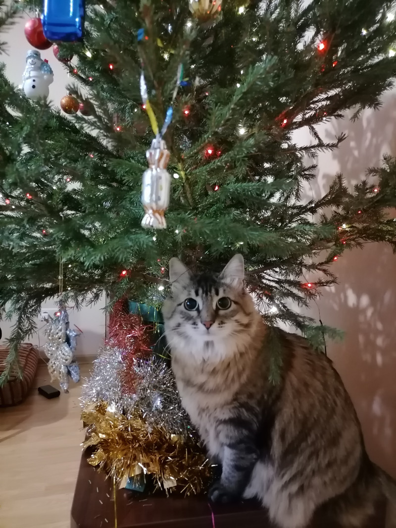 Наша ёлка, маленькая, но сыну и кошке нравится biggrin_rt_40.gif