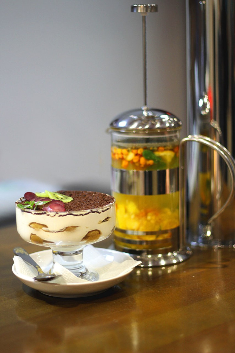 Вот вам красивое фото в тему, Тирамису и облепиховый чай, пироженное готовил сын, чай я, но это было давно🤣
