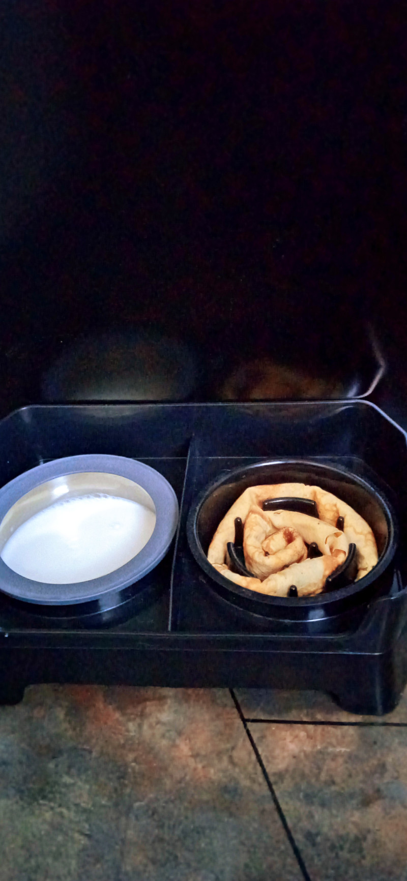 Это блин комом змейкой эксклюзивно своему хвостатому глотателю. Несмотря на " миску для медленного поедания" сфотографировать процесс не успела...