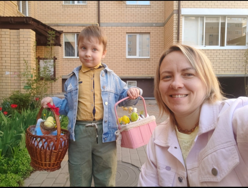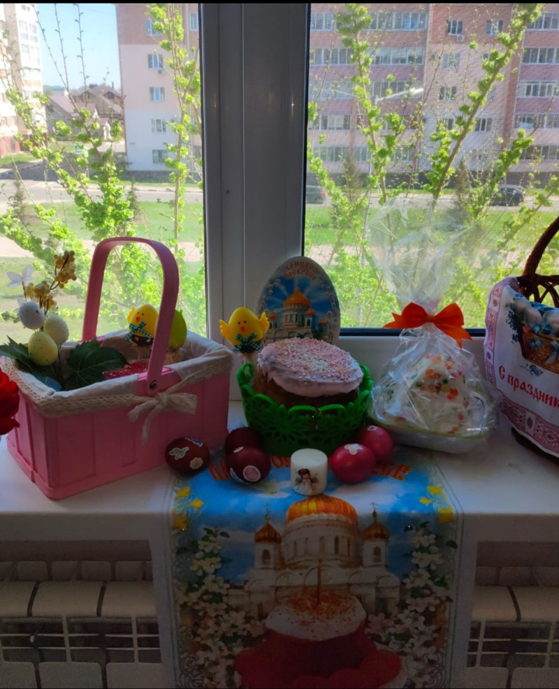 Мы только собираемся в церковь, ещё не освятили. Я пекла куличи, окрашиванием яиц Артём занимался)))