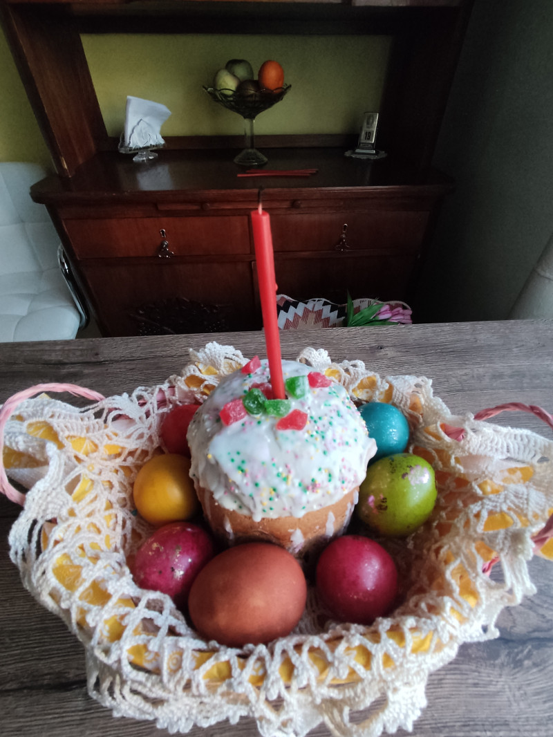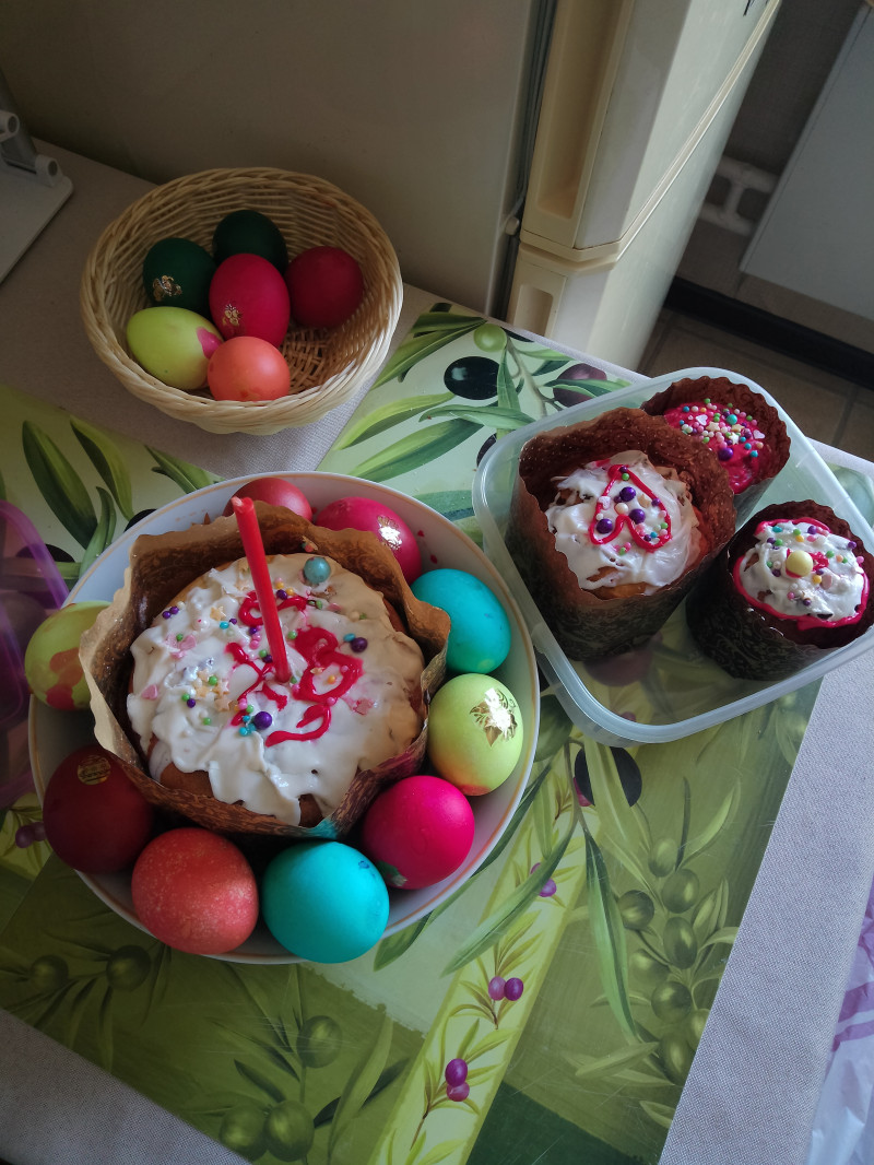 В этом году все бегом, ничего не успеваю, и кулич покупной, но отредактированный Только вернулась)