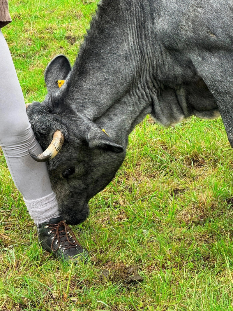 Она - инженер-нефтяник в прошлом. Училась в Италии. Управляет сейчас бывшим колхозом. 65 голов коров. Штат - 6 человек. Все животные на свободном выпасе в 128 га. Успевают водить экскурсии, воспитывать детей.