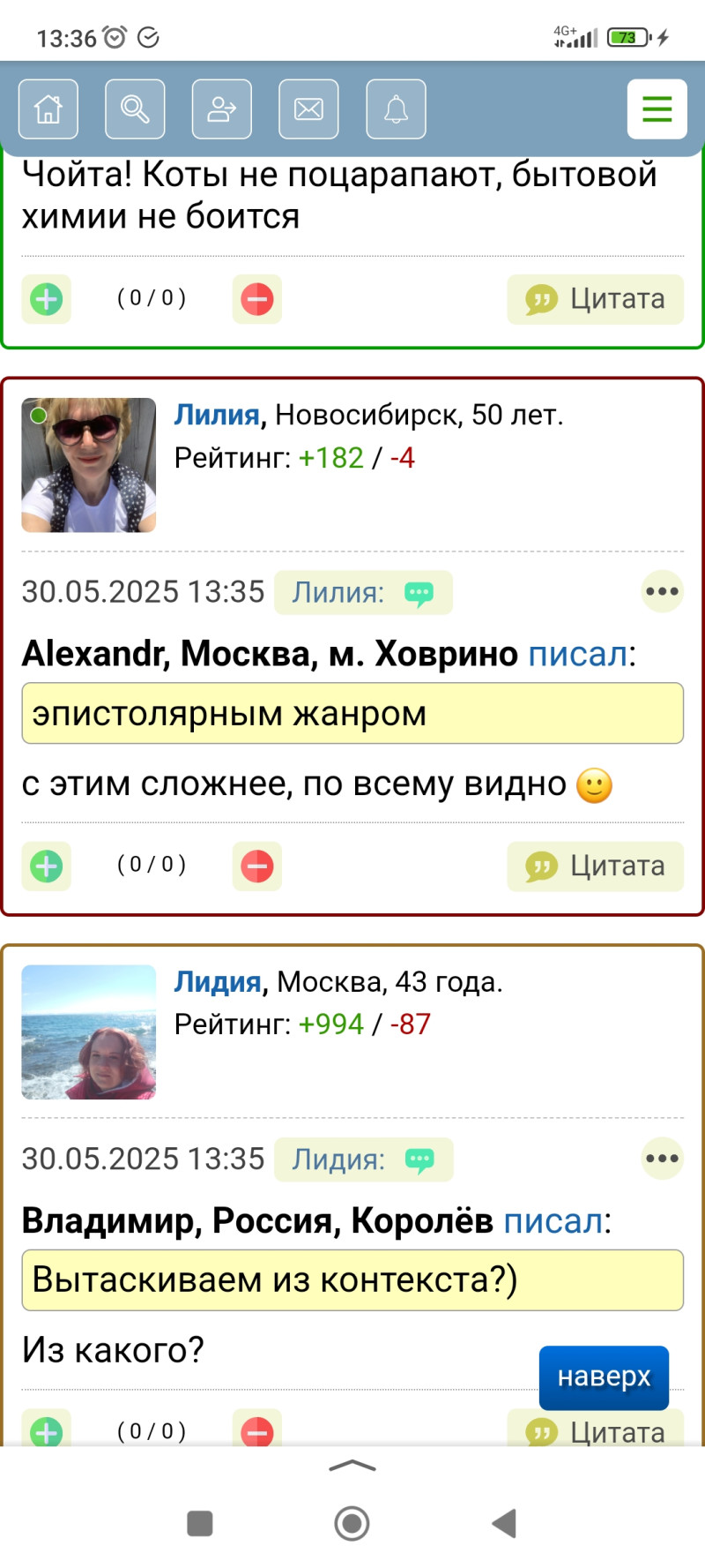 Да чтоб было понятно, на какое сообщение ответ даёте!! Кнопка "Цитата"!!!
