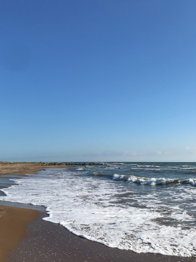 " Во-первых, погода на побережье очень комфортная, не было изнуряющей жары, палящего солнца, духоты. Ближе к вечеру даже порой прохладно (лично мне), дважды был сильный дождь, шквалистый ветер, кондиционер большую часть времени не включали. Море шикарное для маленьких детей: волны если и были, то не большие, пляж и дно песчаные, вода практически не солёная! Это прям очень круто, т.к. помню, как старшие дети страдали от попадания морской воды в глаза, а здесь вообще это незаметно. В большую часть дней вода была чистая, но порой волнами приносило много водорослей и мусор. "