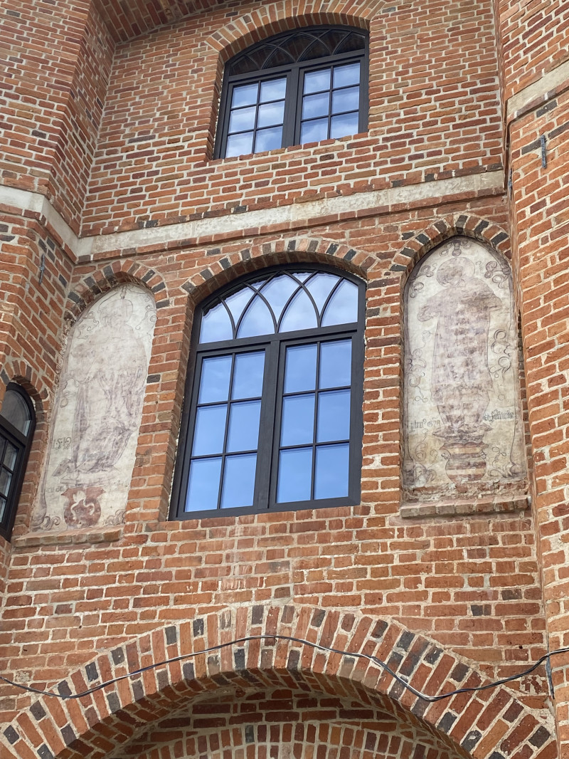 В качестве извинения и на правах рекламы своей любимой янтарной земли порекомендую посетить замок Нойхаузен, основанный в конце 13 века. Я тут гуляла полдня. Находится недалеко от Калининграда , в пригороде -сателлите Гурьевске. Его начали восстанавливать в 2023, открыли к посещению 32 мая этого года. Еще через полгодика там откроется ресторан средневековой кухни, а через годик - отель на территории замка. Лам для паркового замка уже закупили и они пока на передержке в Белоруссии. Восстанавливают с использованием исторического кирпича, собирая его по всей области . В замке крутят любопытный рисованный 10-минутный фильм про историю замка и самой пруссии со времен Самбии по текущее время. Замок, к сожалению , был сильно разрушен в ВОВ, поскольку рядом был аэродром Люфтваффе. Да и сам замок был последним огневым рубежом перед взятием Кенигсберга. Окончательно его взяли 29 января 45 года. 7 раз переходил из рук в руки. Но восстановили, достойно. Нашли скрытые фрески (не фрески , а … мммм… аль секо? ) , по-видимому, с образами Богоматери и Георгия Победоносца.