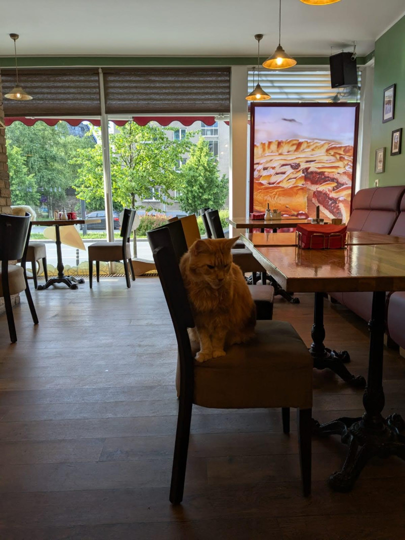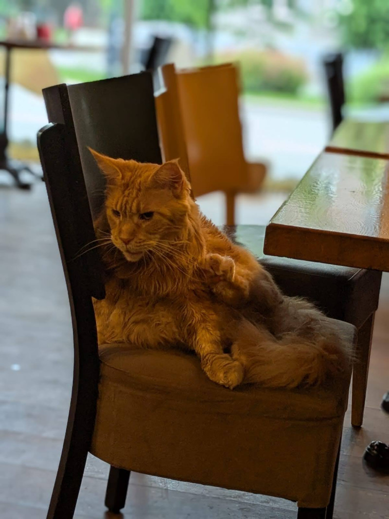 Хозяин сказал ,что это его кошечка она старенькая с ним всегда приезжает на работу