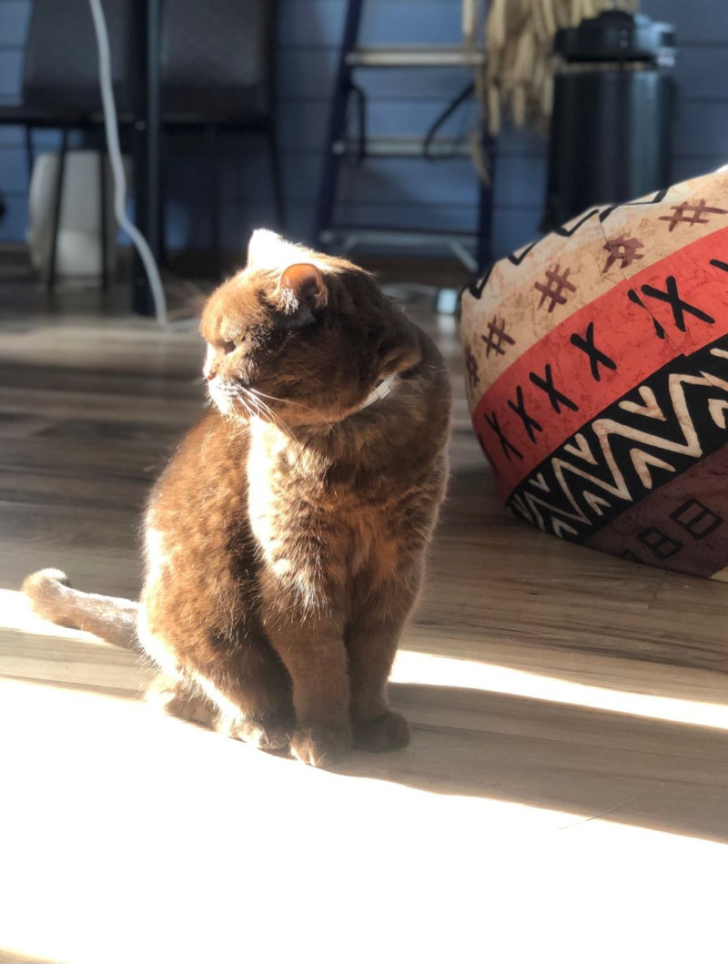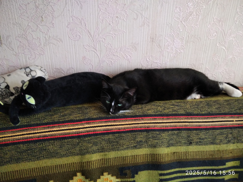 Я у мамы дурочка) кошка- дизайнер, которая решила, что на кухне давно пора сделать ремонт. И помогает обдирать обои. Кот Учёный. Очень любит спать на книжках. Его Беззубое Величество)