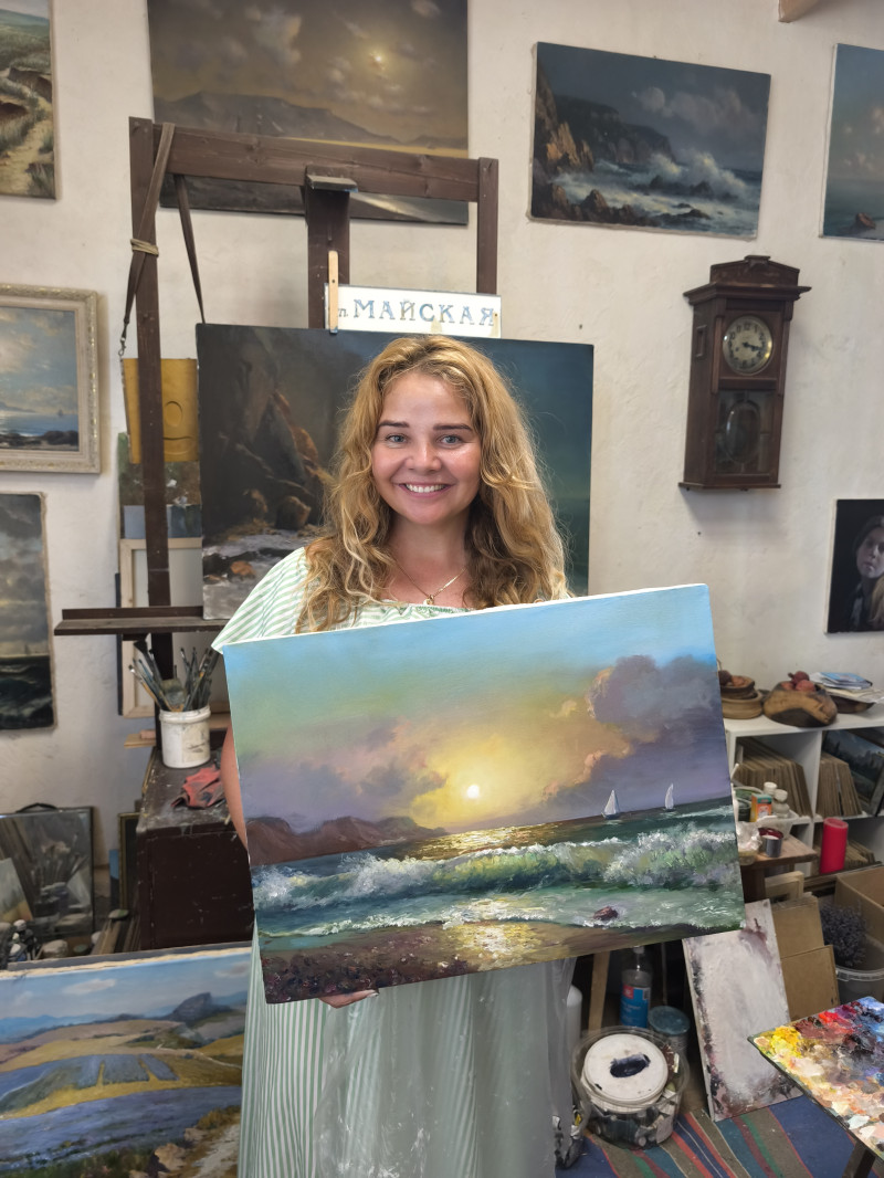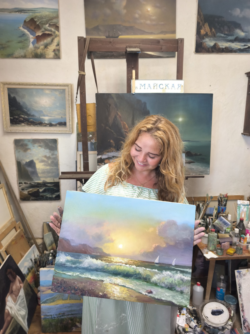 Да! Местного художника Я дружу с ним и его женой. Он мне помогает волну писать Владимр Коломиец. Посмотри в интернете много его работ.