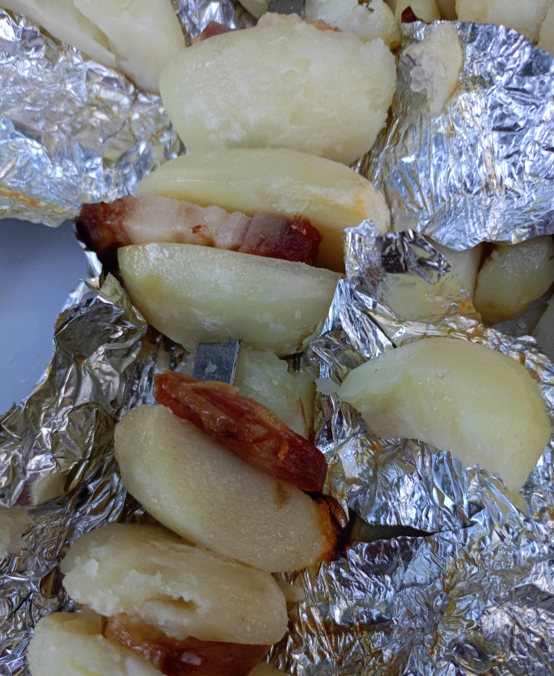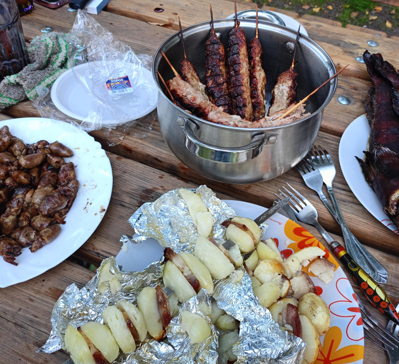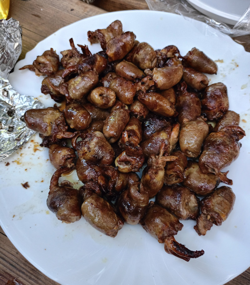 Оль, коричневая кучка это сердечки куриные? Их на решетке или как?