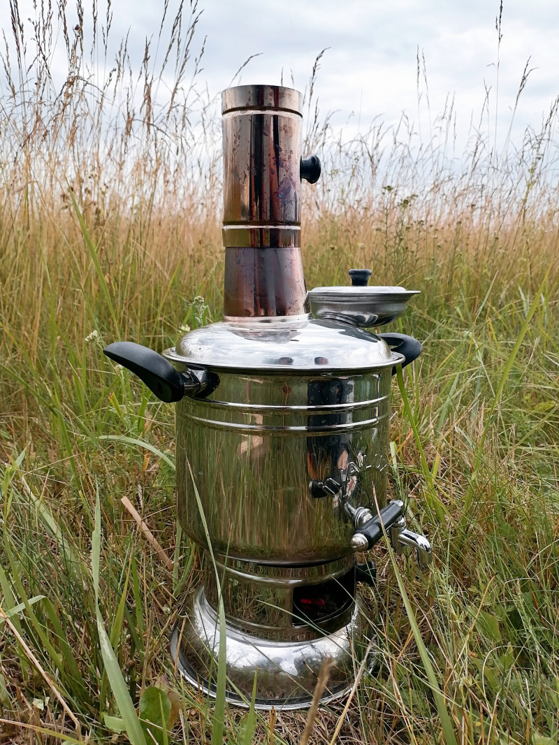 Сама конструкция, это разновидность самовара, только с боковой площадкой для чайника, ни как на тульских с верху. Такие используют в Турции, а палочка, это краник. Такой ракурс получился, что сразу не понятно.