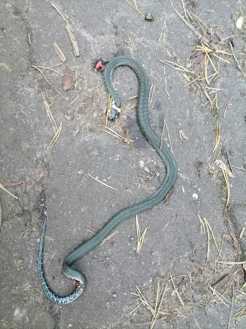 А мы ужа задавленного нашли, жарко, говорю всё лето лягушек лопал и всё зря))