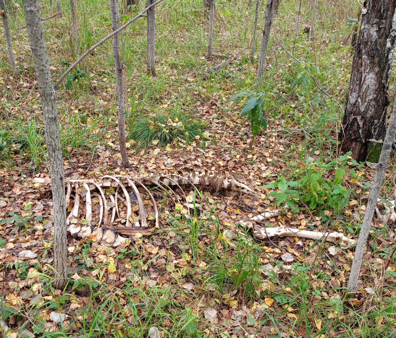 Я нашла березовое яйцо) Очаровательные белые поганки в чёрном лесу) Ловушку большую, на медведя штоль И чей-то череп со скелетом