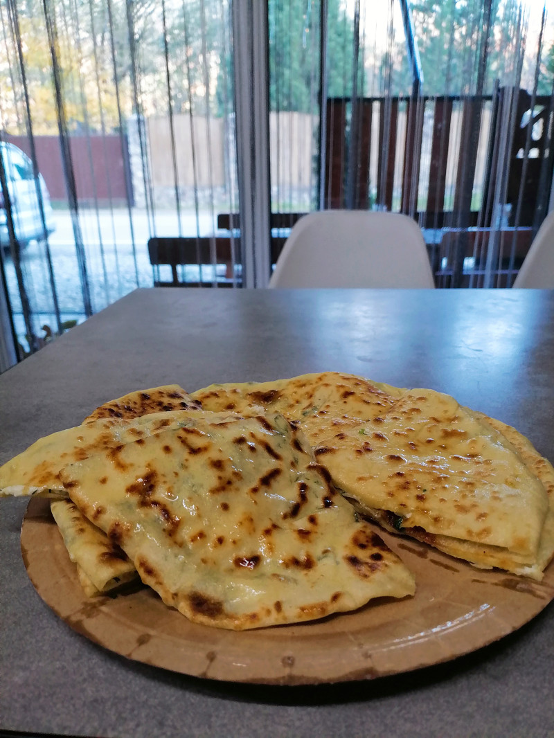 Позавтракав в придорожном кафе хычин с сыром едем с "хвостиком" домой.