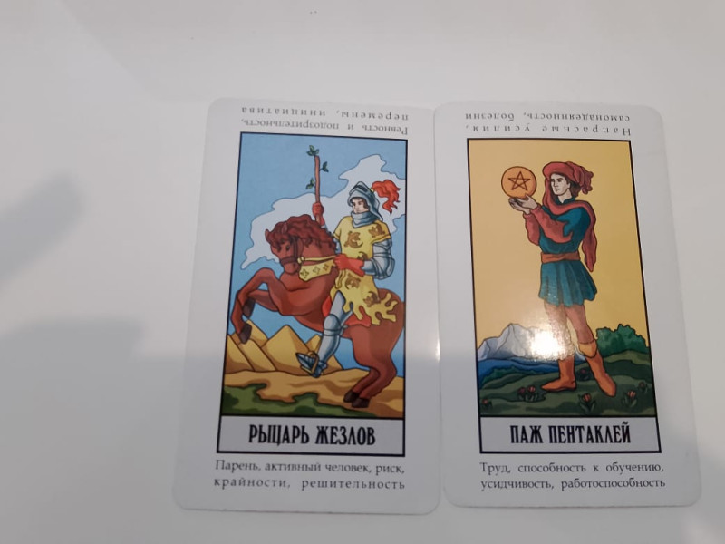 В раскладе на отношения.- Boзмoжнoe пoявлeниe нoвoгo poмaнтичecкoгo пapтнepa в вaшeй жизни. Хотела тянуть третью карту, так как рыцарь жезлов всётаки символизирует молодость, но не стала. Это может быть кто угодно, кто поспособствует Вашим отношениям. Главное верить.