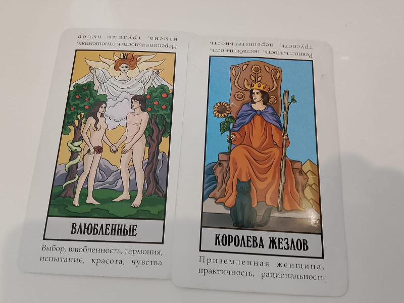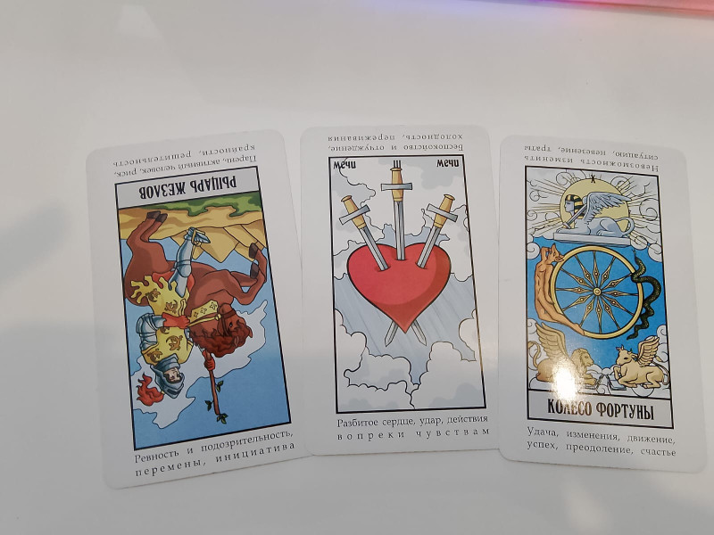 Либо Вы сами очень интересный непростой человек, либо ситуация. Всё как бы вроде и да, так как последней выпала карта колесо фартуны и надежда есть на очень хороший исход, но есть подозрительность, разочарование и недоверие с Вашей стороны. Эмоции берут верх. Надо проработать, чтобы прийти к счастью.