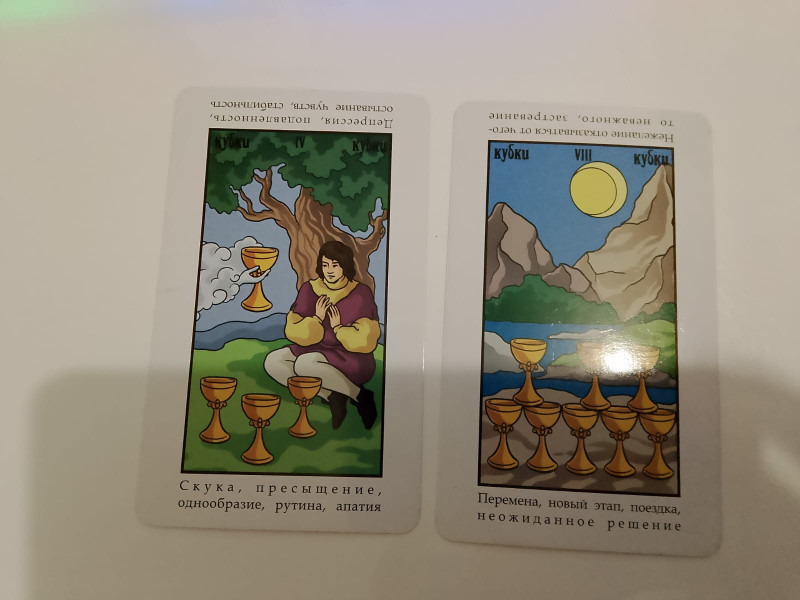 Ах, если бы не Паж кубков, какая была бы красота, но он есть и он первый. Учитывая, что расклад размыт (просто на будущее) то здесь несколько вариантов.