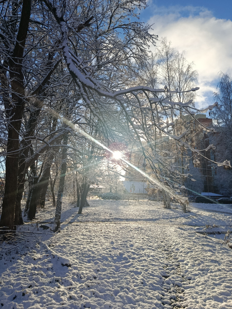 А из нашего окошка только улица немножко) А в Питере вчера было такое голубое небо!!