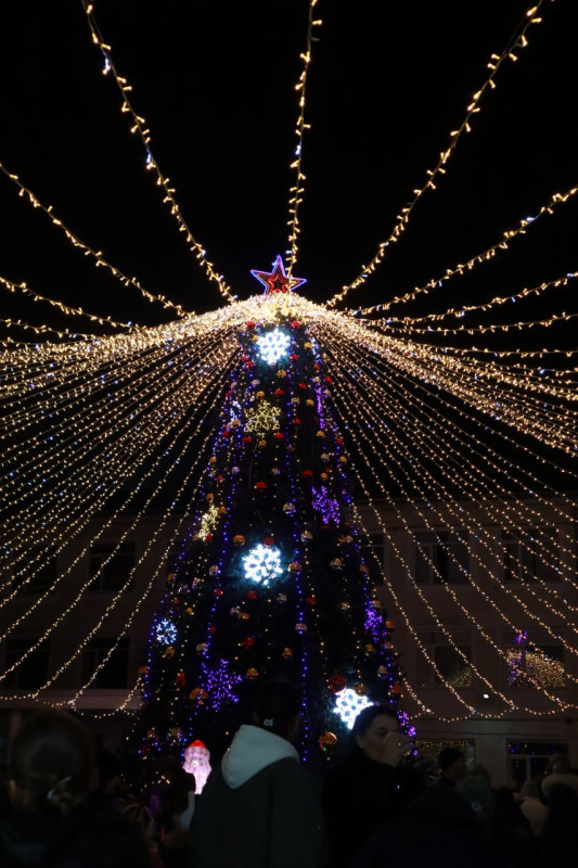 У нас маленький город, два дня назад только поставили елку, вчера на день Святого Николая было открытие, елочка зажглась)