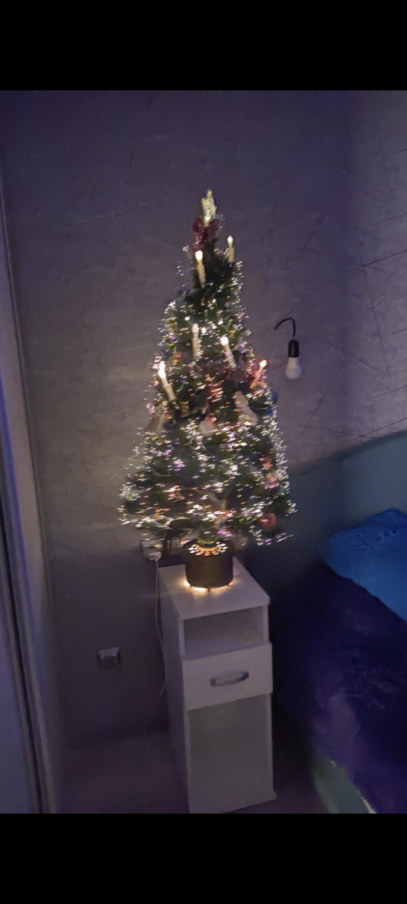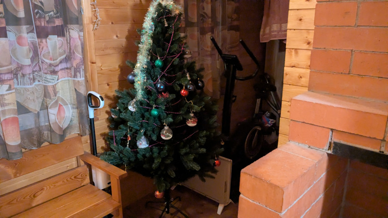 Раньше была искусственная, вращающаяся, отдал бывшей жене. Прошлый Новый год встречал без ёлки. В этом году решил поставить. Скоро поеду в Абхазию за вином и коньяком, спилю