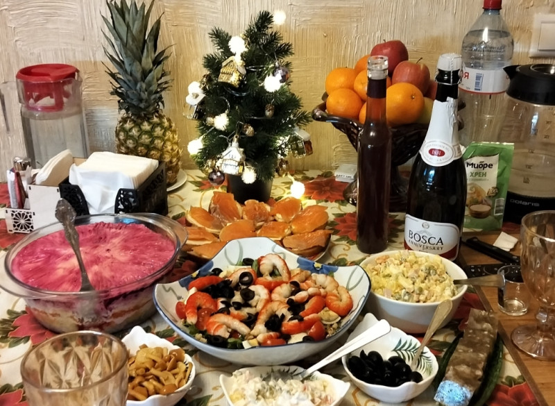 А у нас "Селёдка под шубой" обязательна. Оливье. И холодец домашний. Остальное по настроению