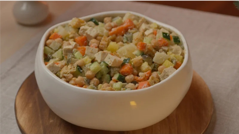 Оливье, мимоза, брускетты, все пп, много фруктов.