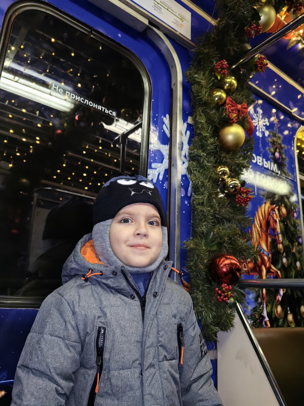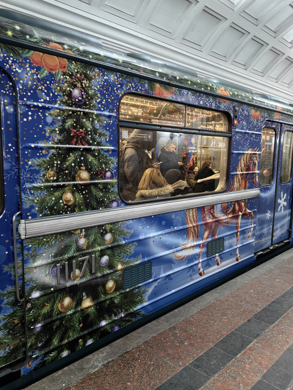 Сегодня с младшим попали в самый новогодний поезд метро.