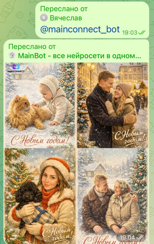 Персонажи на открытке одеты в атмосферные винтажные зимние наряды, создающие еще больше уюта и тепла, с нотками ностальгии. В кадре также новогодняя елка с простыми советскими игрушками, гирляндами из баранок и легким снегом на ветках.