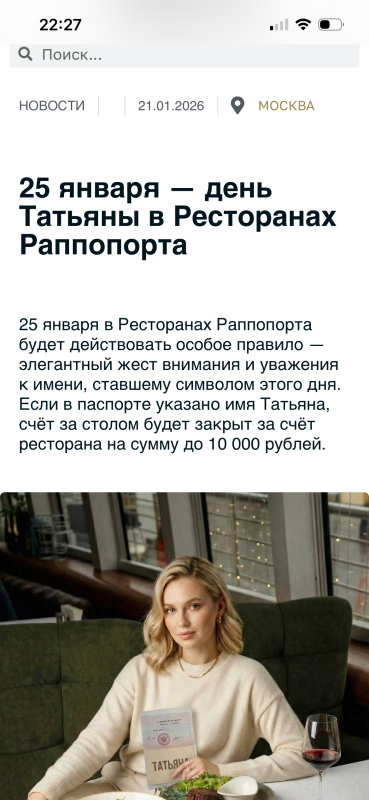 ЭдВоткну в Вашу тему ) можно?Прикольная информация) вдруг кому то пригодится)Отличный вариант посетить шикарный ресторан в честь Татьяниного дня))