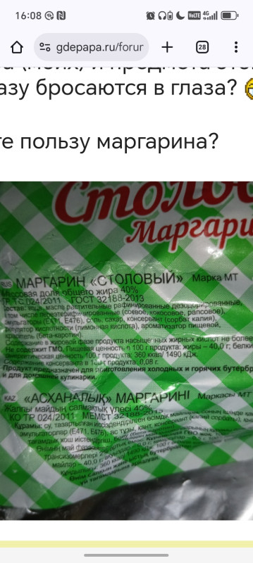 На днях я пообещала доказать одному сосайтнику пользу маргарина , назначенного врачами вместо сливочного масла 2 года назад. По анализам холестерин за 2 года почти в норме.Но так как жаба меня душит оплатить 200 Рэ, да и нету их сейчас, а маргарин есть🤭, то я решила показать эту пользу всем В Иркутском маргарине нет пальмового масла 😉Ну и в диете если макароны, рис, овощи, фрукты тоже способствует снижению холестерина. Предлагаю обсудить связь качеств характера (моих) и предмета