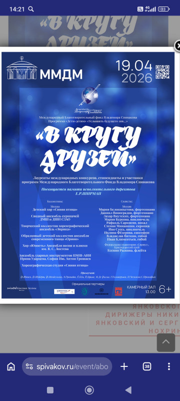 Едем с ребенком, выступала она в МДМ с Фондом Спивакова... И вел сегодня перфоманс художественный руководитель, заслуженный деятель искусств России Петр ГУЛЬКО. Посвятили недавно умершей его жене, исполнительному директору Фонда, заслуженному работнику культуры России Екатерина ШИРМАН...