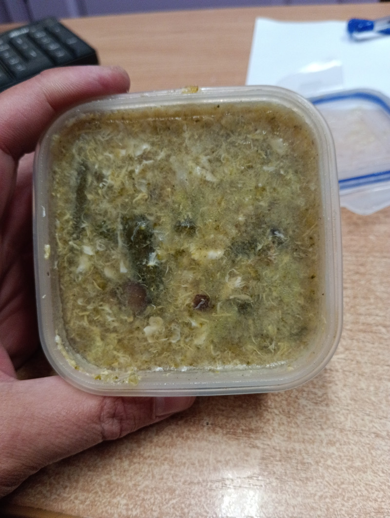 3 Форма должна немного постоять, чтобы смесь «спустилась» сквозь капусту до дна.
