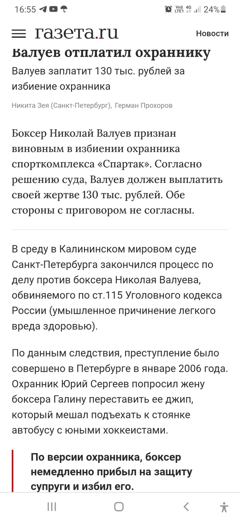 Версию охранника вижу. Версию Валуева не вижу. Но самая мякотка: "ОБЕ стороны с приговором не согласны"