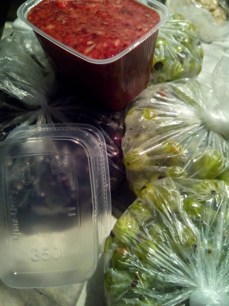 Морожу крыжовник, вишню, клюкву, черную, красную смородину, тыкву кубиками (в кашу) и в сыром виде вкусно. Объемы маленькие - разморозили - съели. Толку в баночки с сахаром малину (целиком морозить ее мне не вкусно), чернику, клубнику, землянику, черную смородину, можно немного сахара, так как в морозилке будет.