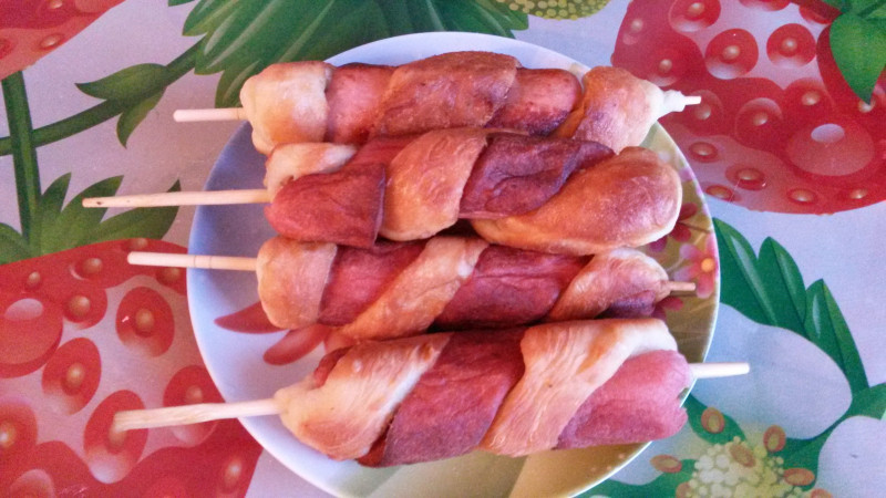 А у меня детки такое любят)))) - сосиска в тесте на палочке)
