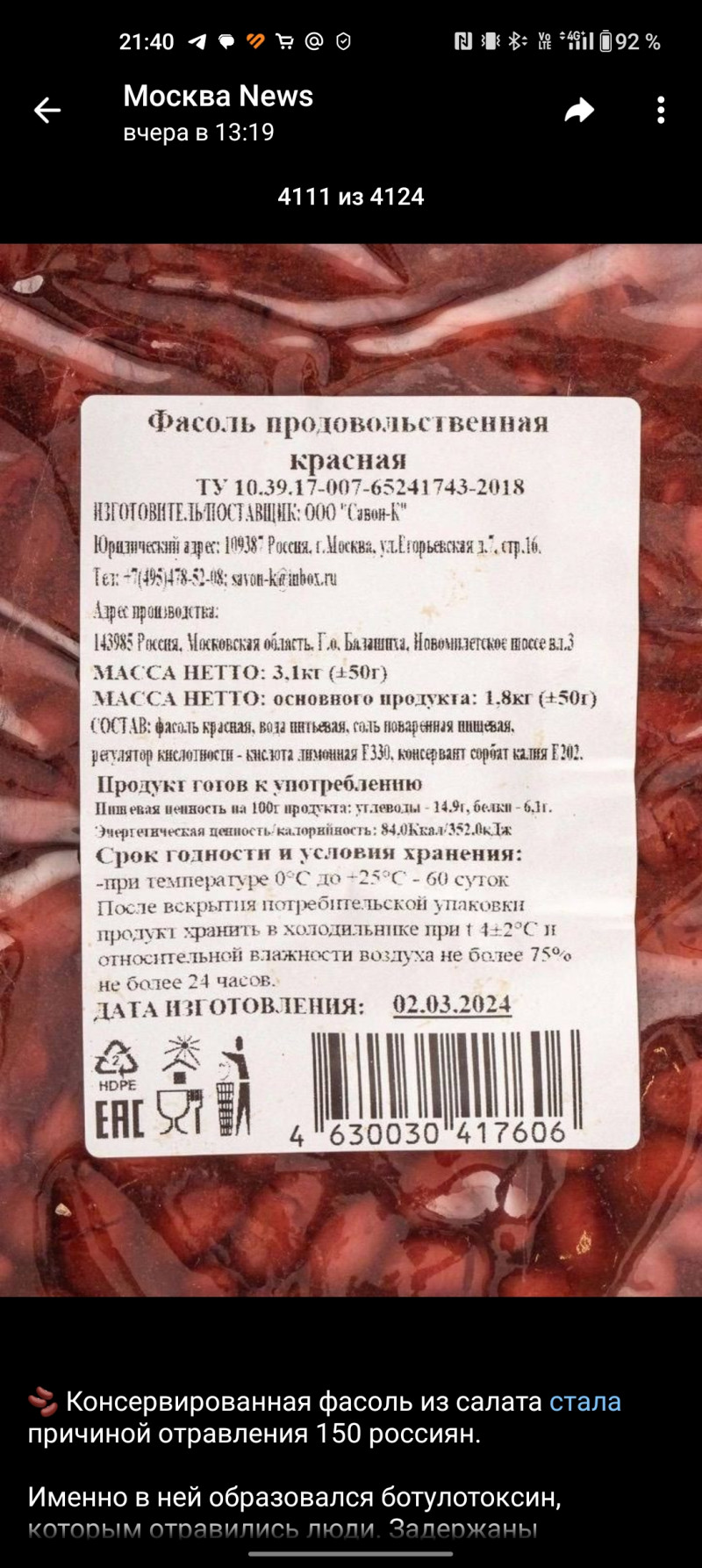 Даже уже ген. дира поставщика этой фасоли арестовали.